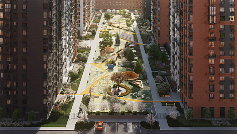 Двор-парк размером с гектар, 25 зон отдыха: от летнего кинотеатра до спортивного поля.