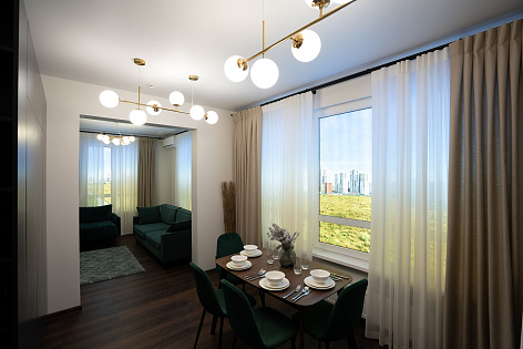 На втором этаже - бэк-офис, кабинет руководителя и шоу-румы. Две демоквартиры с чистовой отделкой и одна с отделкой white box. Уютные интерьеры шоу-румов заставляют забыть, что ты в офисе. Полное погружение в обстановку, словно ты действительно дома. В окнах шоу-рума используются LightBox и визуализируются лучшие видовые характеристики района со специально разработанным 3D-видом из окна будущей квартиры.