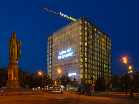 Минималистический визуал, помноженный на архитектурные смыслы — и на выходе имеем городскую световую инсталляцию в 13 этажей (44-метра)