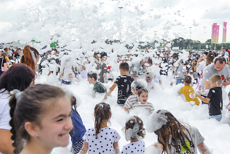 - Праздник на парковке: резвились на бесплатном батуте; разыграли миллион, скутер и другие подарки на финальном розыгрыше акции «Погоня на миллион»; отрывались, танцевали и подпевали на пенной дискотеке, под живую музыку, с кавер-группой Bali