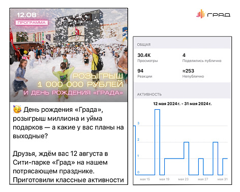 также на главных трендсеттеров SMM в России, транслируя уникальные преимущества ТРЦ. Мы активно следим за актуальными инфоповодами, всегда оперативно реагируем