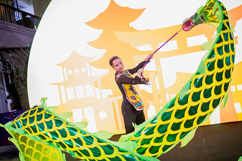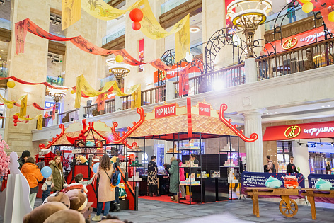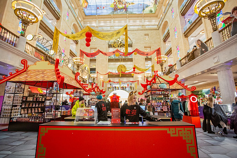 Тематическая застройка в главном атриуме позволила воссоздать в ЦДМ настоящую атмосферу восточного праздника и стала основной площадкой для проведения различных активностей в рамках фестиваля «Тысячи огней».