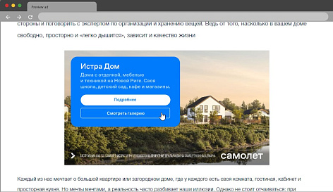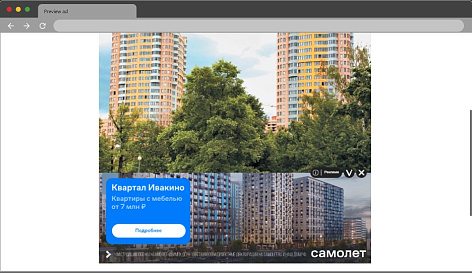 Группа «Самолет» выбрала 12 жилых комплексов и продуктов с различными УТП. Для каждого из них нужно было определить наиболее подходящий сегмент аудитории, привлечь его внимание яркими и заметными рекламными форматами и обеспечить переход на следующие этапы воронки продаж.