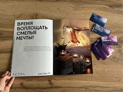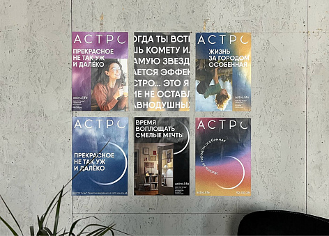 В разработке визуального решения, мы ушли от привычного для девелопмента выбора одного или нескольких цветов. Вместо него появилось графическое решение, возвращающее нас к метафоре бренда — космосу.