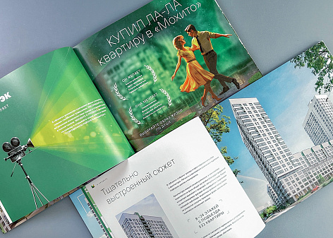 Недвижимость комфорт-класса часто обладает схожими характеристиками. Яркая концепция буклета сразу вызывает положительный эмоциональный отклик, оставляя «Мохито» в сердцах наших зрителей.
