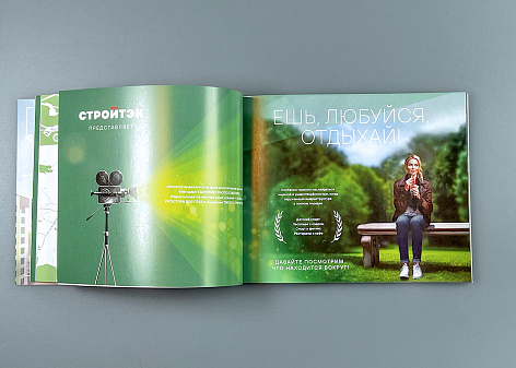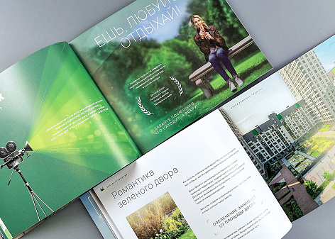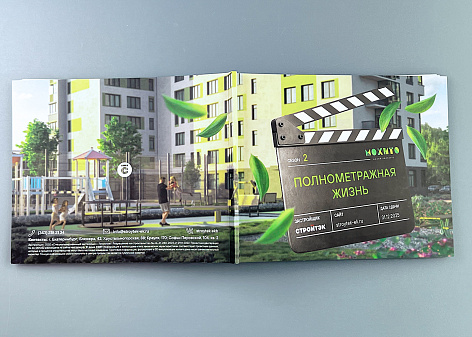 Пересматривая буклет вновь и вновь, вы найдете множество интересных «киношных» деталей. Общий копирайт буклета поддерживает и развивает концепцию Большого кино, погружая читателя в собственный мир, который он сможет создавать внутри комплекса.