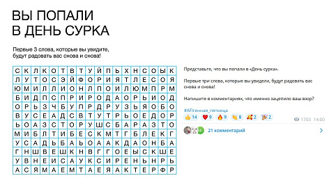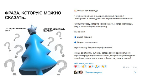 Ядро ЦА страницы AFI Реальность объединяет аудиторию продвигаемых проектов. Это семьи из Москвы и МО, а также мужчины и женщины от 25 до 50 лет, которые рассматривают приобретение недвижимости как возможность значительного улучшения жизни. Квартира для них — больше, чем совокупность квадратных метров и отдельных характеристик. Основанная на юморе контент-концепция объединяет людей самых разных взглядов, профессиональных сфер и увлечений, позволяя говорить со всеми ними на одном языке — языке хорошего настроения.