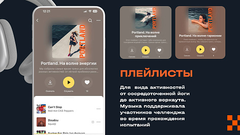 Для увеличения охвата мы анонсировали челлендж на сайте Portland, сделали мощную поддержку проекта в соцсетях бренда (в том числе создали пак анимированных эмодзи), привлекли 11 блогеров из разных категорий (спорт, лайфстайл, путешествия, контентмейкеры) и опубликовали на Яндекс Музыке драйвовый плейлист для тренировок.