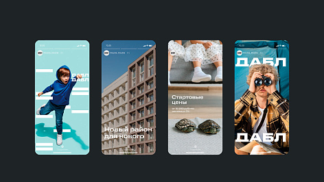 Название Дабл Дабл не только четко отразило идею бренда, но задало всю ритмику проекта – “Дабл Дабл” стало и слоганом кампании, и устойчивым выражением ушедшим в народ. Также название вдохновило дизайн, определив крупную строчную верстку стиля. Крупная, устойчивая типографика логотипа транслирует образ героя и передает смысл архитектуры ЖК. Логотип транслирует идею уровней, при этом может использоваться гибко, поддерживая формат носителей, что похоже на переход от ступени к ступени. Визуальный язык также поддерживает идею, удваивая объекты на макетах, а вербальная коммуникация дублирует и усиливает эту формулу.