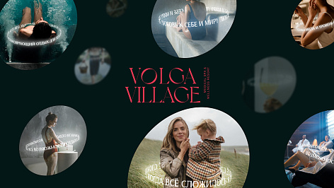 В Volga Village каждый может найти свой источник энергии, будь то прогулки на свежем воздухе, огромная кровать с хрустящим постельным бельем, тишина, вкусная еда, spa-программы или дорогой алкоголь с шумными посиделками. Для поддержания идеи в визуале вокруг людей используем светящиеся круги из фраз, отражающие индивидуальность человека и чем он заряжается.