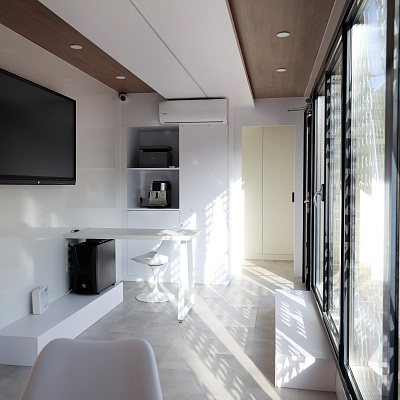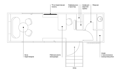 Для любителей кофе в AVA-bus есть кофемашина, декоративные цветы, шкаф для одежды и туалетная комната. Общая площадь AVA-bus – 19 м2.