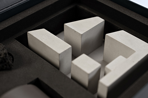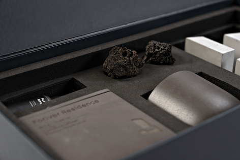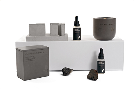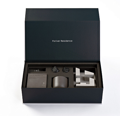Для жителей такого дома был создан подарочный набор 4 elements: огонь, вода, земля, воздух. Незаметно и интеллигентно он помогает продолжать атмосферу, ощущение, эстетику проекта Foriver Residence - в каждой квартире. В комплект также входит отлитый из архитектурного бетона макет проекта, который может стать предметом современного искусства в интерьере будущего дома, как символ чистой формы.