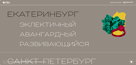 При клике на локацию открывается карточка с тремя эпитетами, которые передают «вайб» города. При клике на карточку открывается контент с описанием города, где мы объясняем, как настроение мегаполиса нашло свое отражение в «Метрополии». Для каждого
