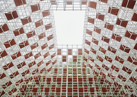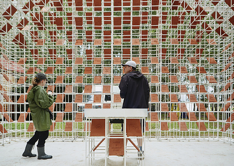 Структура информационного пространства в арт-объекте реализуется в виде кубического объема, который наполнен сетчатой пространственной структурой из стального прута. Внутри пространственной сетки размещаются под углом к земле глиняные таблички с написанной на них информацией. Внешний кубический объем арт-объекта при попадании человека внутрь становится пространством, по конфигурации напоминающее образ традиционной постройки избы-читальни со скатной крышей.