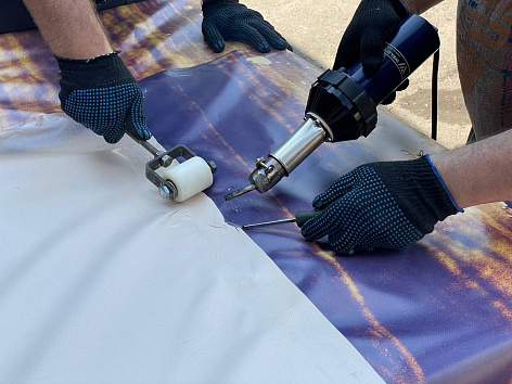 Стоимость всего проекта – 430 000 рублей. Материалы изготовления – вторичные рекламные и строительные материалы. Примерные габариты в метрах – 8х16 м.