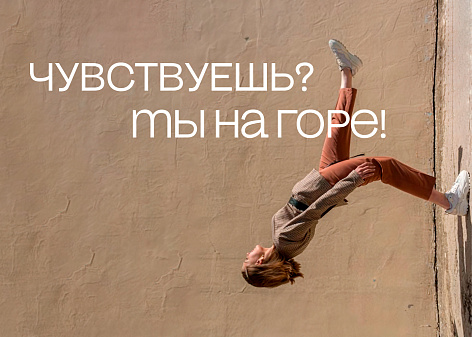 Использование вопросительного месседжа "чувствуешь? ты на горе!" формирует эмоциональный отклик у аудитории за счет личного обращения и создания ассоциативного ряда, подкрепленного визуальными образами.