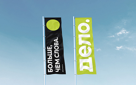 Посыл развили в емком кириллическом имени бренда. ДЕЛО — название, которое говорит само за себя, транслирует осмысленность и ответственность компании. Подкрепили его генеральным слоганом: «Больше, чем слова».