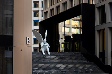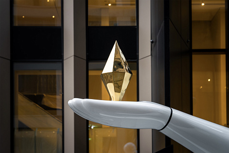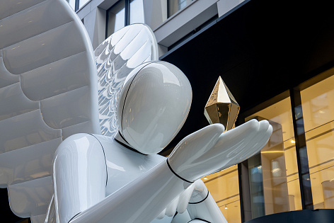 В руках ангела — драгоценный камень кристалл. Он не только отсылает к истокам квартала, девелопер которого — STONE, но и несет в себе сокровенное значение. Кристалл — образ яркого желания, который символизирует стремления людей, нацеленных на исполнение своих мечт.