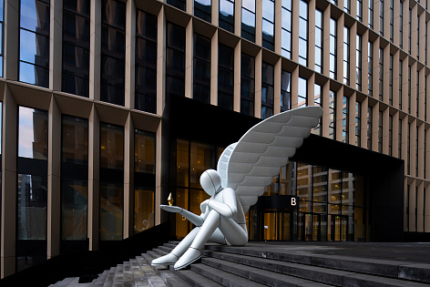 Решение о том, что на территории STONE Towers появится арт-объект, было принято в начале реализации проекта. Для того, чтобы включить площадь между башнями в городской контекст и создать связь зданий с существующей средой, была выбрана форма конкурса — как наиболее объективного процесса отбора лучших идей. «Ангел» стал победителем открытого конкурса STONE Art «Философия новых форм», на который было подано 170 заявок из 28 городов России и стран СНГ.