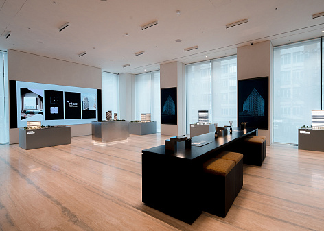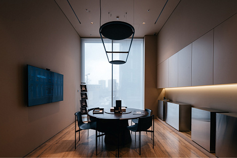 Дом продаж расположен в Tower C офисного квартала STONE Towers по адресу: Москва, Бумажный проезд 19стр4, где в будущем разместится и штаб-квартира компании. Пространство демонстрирует подход девелопера в каждом проекте — функциональный минимализм, премиальные материалы, продуманная эргономика.