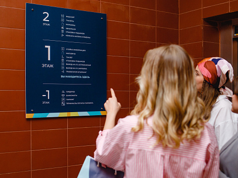 Основная сложность — в торговом центре представлено большое количество арендаторов со своим брендингом, а также реализуется много внутренних проектов. Необходимо, чтобы фирменный стиль был гибким и легко адаптировался под любые задачи.