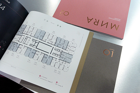 Мы ввели графический элемент — текстовую ленту, которая буквально окутывает здания, то есть создает своеобразную аллегорию камерного дома. Символизирует внимание к человеку, показывает ощущение защищенности. Лента движется — как жизнь в МИRA: плавно, без суеты, но с направлением и смыслом.