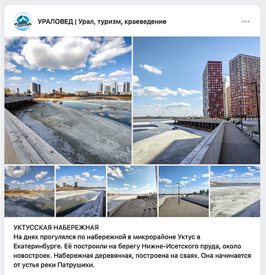 Таким образом, мы разработали говорящее топонимическое название и бренд "Уктусская набережная". Оно звучит как исторически возникшее, и удобно для разговорной речи. Оно транслирует то, что нужно. Это на Уктусе. Это на воде. Это — целый район.