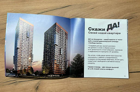 Буклет для жилого комплекса «Да на Амундсена» разработан с целью создания яркого и информативного инструмента продаж, который наглядно демонстрирует преимущества проекта.