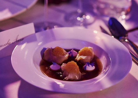 Шеф ужина - Евгений Викентьев, который разработал специальное русско-итальянское меню для этого вечера. Вначале мероприятия гостей поприветствовал Марко Казамонти рассказал о том, что объединяет Италию и Россию, какие есть общие ценности, традиции и культурные особенности. В продолжении вечера шеф - Евгений Викентьев рассказал о задумке ужина, особенном итальяно-русском меню, ингредиентах привезенных только для этого ужина и специальной подборке вин.