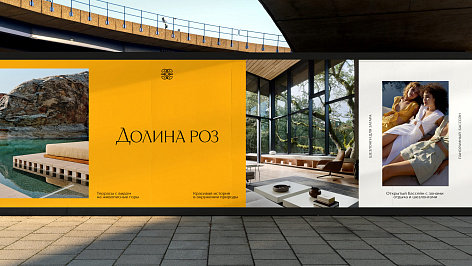 Средиземноморский жёлтый цвет отражает солнечное и южное настроение “Долины роз”. Лёгкость и лаконичность айдентики позволяют сконцентрировать внимание на главном и подчеркнуть проработанность каждой декоративной детали.