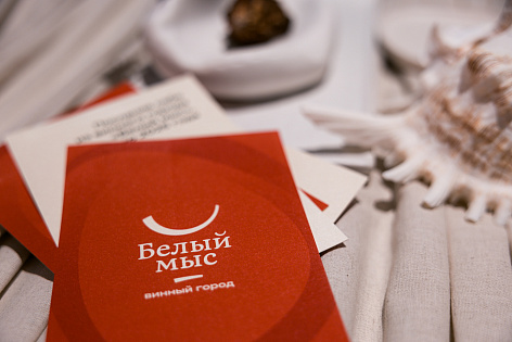 В бренд-платформе рассказывается, как Белый Мыс становится проводником в мир ярких курортных впечатлений: его миссия — воспевать жизнь и вино. Знак логотипа состоит из дуги, напоминающей широкую радостную улыбку, форму Геленджикской бухты и, конечно, винный бокал.