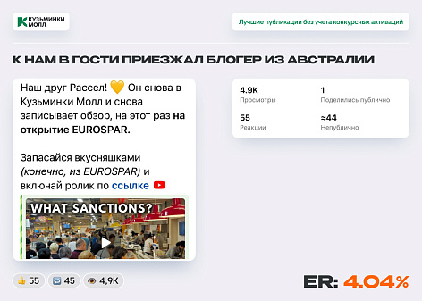 Задача — не просто продвигать арендаторов, а сформировать медиаресурс и живое коммьюнити, связанное с районом, а не только с ТРЦ.