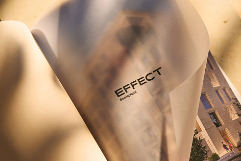 Гармония тканых и глянцевых фактур, утончённая типографика и полупрозрачная калька подчеркивают эстетику бренда EFFECT development.