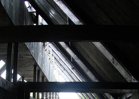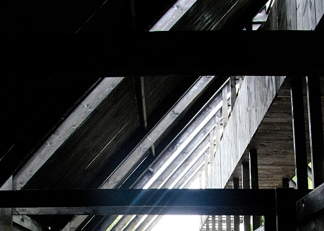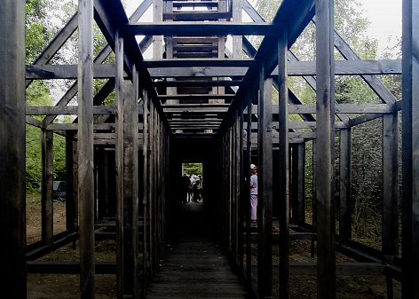 Сарай-градиент даёт возможность замедлиться и задуматься. Его дуалистическая структура погружает в размышления о философских категориях. Очевидное назначение павильона - укрытие - здесь не столь однозначно. С одной стороны, плотная структура укрытия постепенно разрушается, тает и теряет свою функцию. С другой - структура каркаса постепенно обрастает архитектурной тканью, даря надежду получить искомое укрытие.