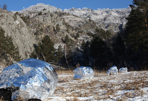 Декабрь 2023: временная инсталляция из термоодеял, в настоящее время демонтирована.