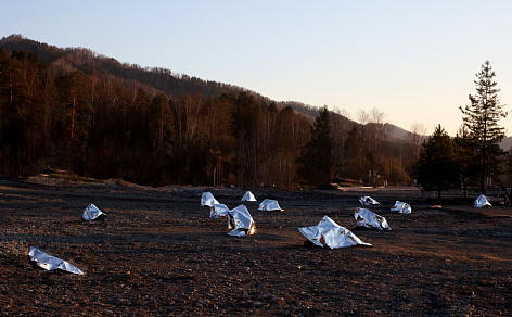 «Сбывшиеся» в рамках резиденции были реализованы из термоодеял — это визуализация опорных точек, которые в тяжелые времена – наше спасенье. Как материал, из которого они сделаны. Термоодеяла используются специализированными службами: спасателями, врачами, поисковиками. Они служат, чтобы согревать найденных людей, оказавшихся в беде, не дать им погибнуть.