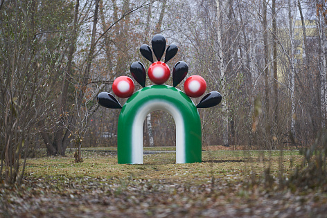 Силой воображения художника, отдельные декоративные элементы отрываются от плоскости, перестают быть украшением, и обретают жизнь в объёме, становясь, в данном случае, «Порталом». Благодаря сочетанию чистых цветов и необычной формы, «Портал» контрастирует с окружающим ландшафтом парка и привлекать внимание своей волнующей инопланетной инаковостью. И в то же время, этот образ, если присмотреться, остается таким близким и родным, словно сошедшим с виденных в детстве у бабушки ставен и сундуков. И, хочется верить, он получит, благодаря художнику, новое место и новое символическое значение в наших сердцах.