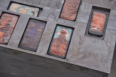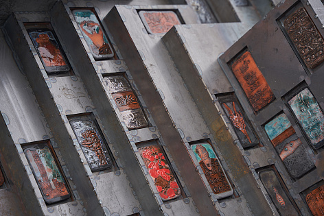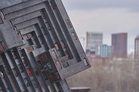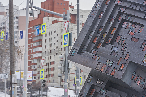 Скульптура выполнена из горячекатаной стали и 365 глиняных скриншотов смартфонов или хроноглифов, которые создали больше сотни жителей Екатеринбурга во время мастер-классов с художниками в Уральском филиале ГМИИ им. Пушкина .